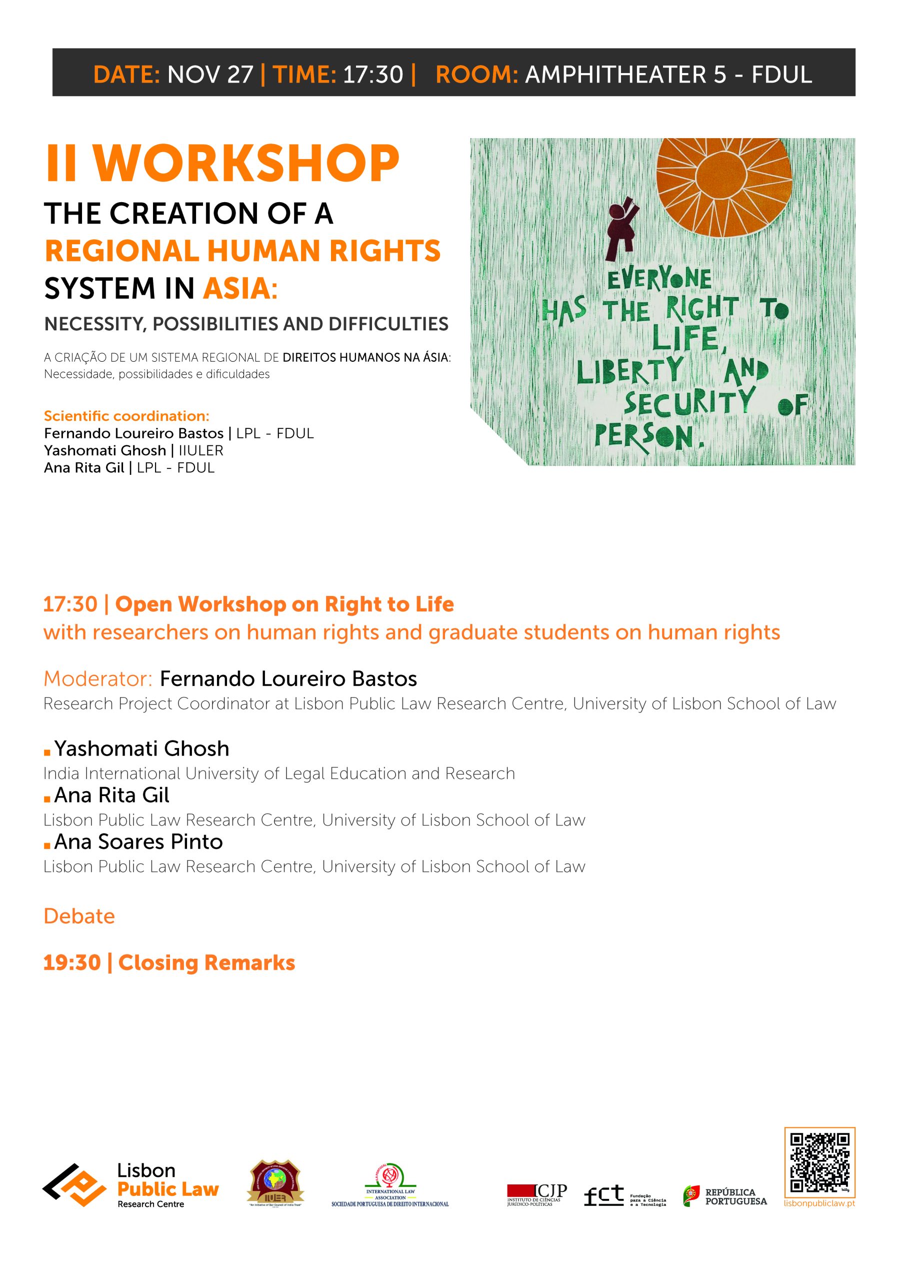 No âmbito, abrimos as portas para um Workshop de acesso livre sobre “Direito à Vida”, onde traremos a debate um dos pilares dos Direitos Humanos.
